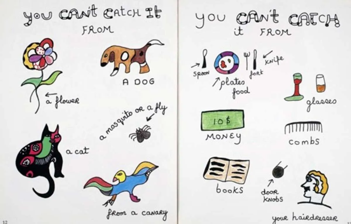 但尼基不仅仅是对社会发泄愤怒。她积极地反对种族隔离、气候变化、枪支暴力,尤其是对女性的不公正待遇。由于艾滋病导致许多朋友去世,她感到心碎,因此也致力于提高人们对这种疾病的认识,并提供预防策略。圣法勒与瑞士免疫学家西尔维奥·巴兰登合作撰写并插图了《艾滋病:你不会通过握手感染它》(1986 年)一书。