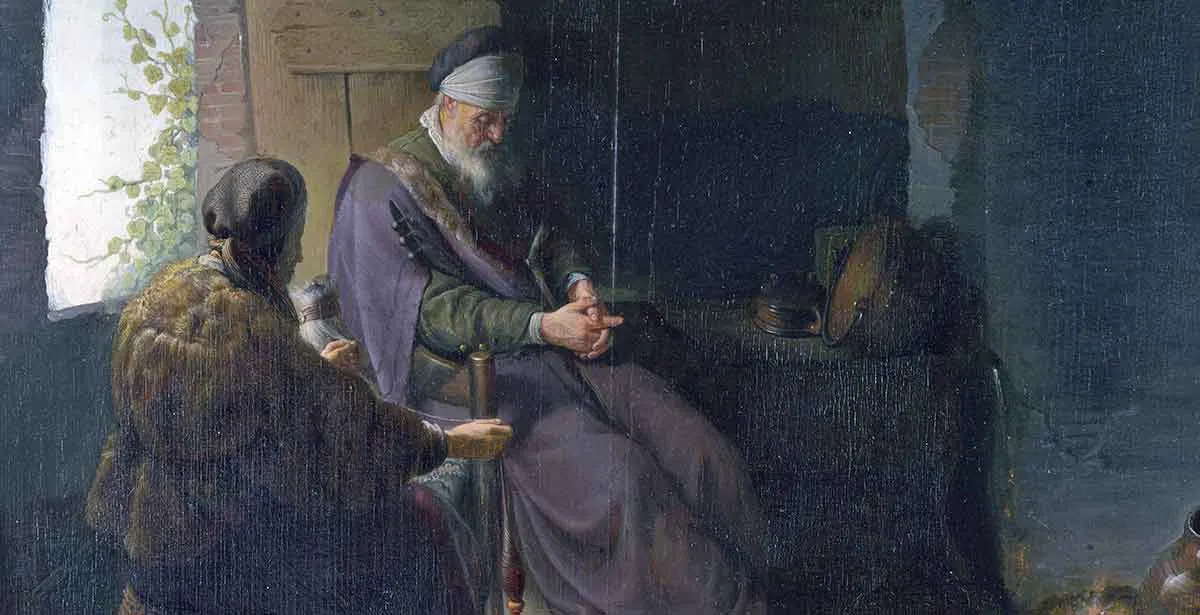 故事中视力和缺乏视力的主题似乎是艺术家对两个人物态度的观念化以及他对色调的选择及其对整体构图的构建固有的。进一步证明这是《托比特和安娜等待托比亚斯》的是伦勃朗对圣经主题和犹太神话的痴迷——以及他在阿姆斯特丹与梅纳塞·本·以色列拉比的密切友谊。
