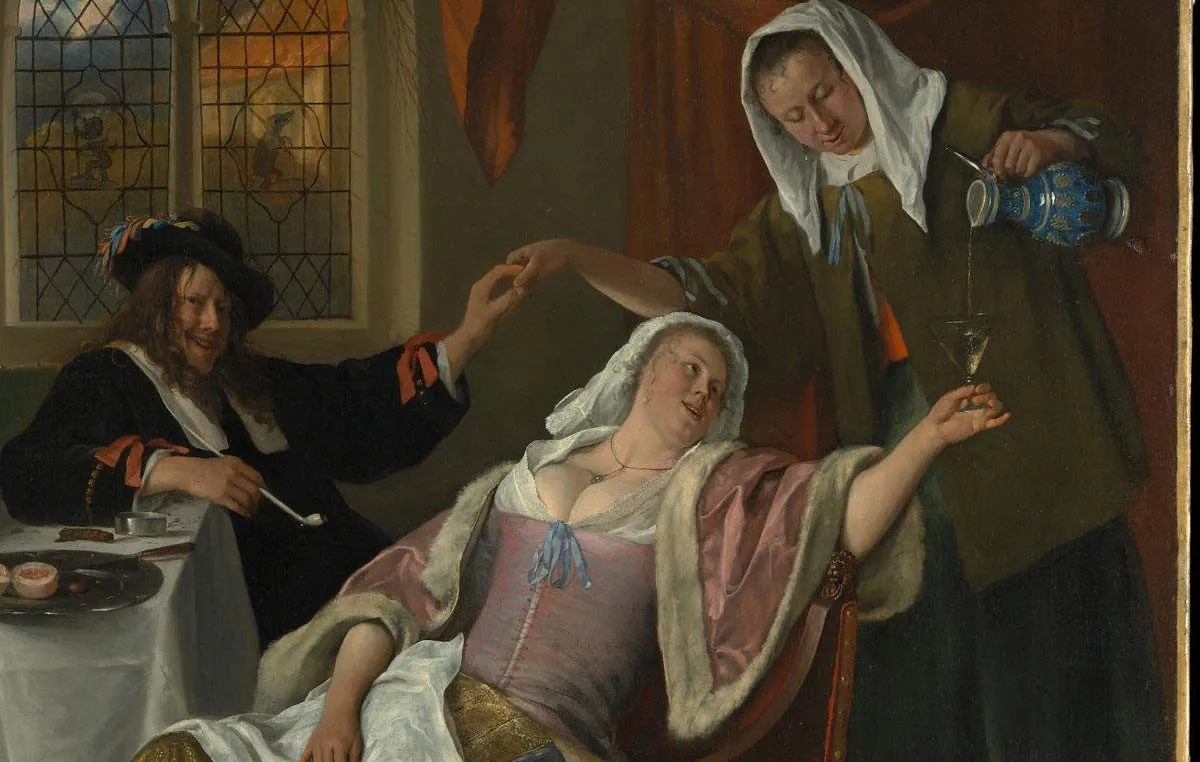 荷兰绘画中的风俗画与前面讨论的描绘居家场景的画作非常相似。然而,关键的区别在于它们关注的是生活中不太光彩的方面。这些风俗画通常作为警世故事,涉及酗酒、不忠、懒惰和其他恶习等问题。