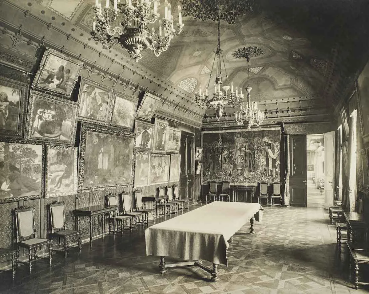 与当时大多数收藏家不同,谢尔盖·史楚金将他的收藏公之于众,甚至亲自带领参观者欣赏他的珍藏。他还是一位进步的艺术策展人。他不按类型或年代分组作品,而是依靠作品的风格特点;将佛教雕塑放在奥迪隆·雷东的象征主义作品旁边,毕加索放在巴洛克风格的家具旁边。到达后,马蒂斯忙于在史楚金的宅邸里布置自己的艺术品。他将画作布置在一个所谓的“玫瑰沙龙”——一个天花板是玫瑰色、地毯是樱桃红色、墙壁是淡绿色的房间里。这种对比是如此强烈,以至于将整个空间变成了一个色彩和形式的Gesamtkunstwerk(整体艺术作品)。