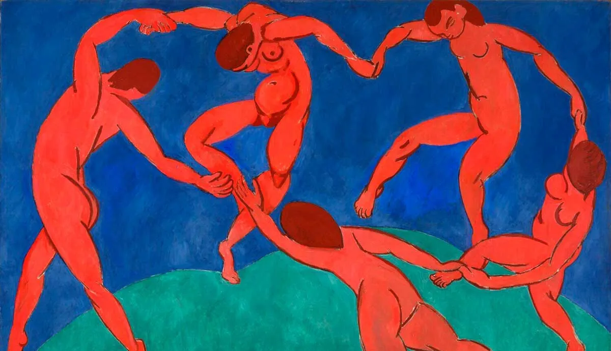 十年结束时,史楚金委托马蒂斯用两幅作品《舞蹈》和《音乐》装饰他莫斯科宅邸的楼梯。这两幅作品旨在以其动感和色彩帮助参观者拾级而上,并在同年展出。马蒂斯于1910年完成了这幅双联画,并在同年展出。结果却是一场彻底的失败:甚至连艺术家最亲密的朋友也不欣赏这件作品。