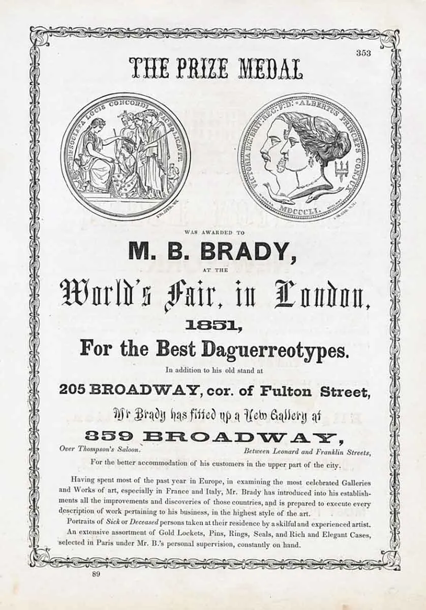 1851年,加德纳参观了伦敦水晶宫万国博览会。许多参观者都是第一次亲眼看到照片。而对于亚历山大来说,这是他第一次接触到马修·布雷迪的著名作品,这激发了他对这项新生艺术形式的热情。布雷迪是美国最早也是最著名的摄影师之一,他曾师从发明家塞缪尔·莫尔斯,并在1844年于纽约开设了自己的工作室。
