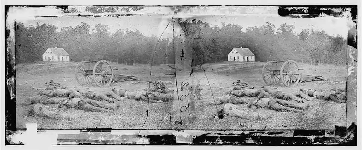 战役两天后,加德纳进入战场,拍摄了一些有史以来最具标志性的战争图像。在两次访问中,他拍摄了大约120张战场照片。布雷迪的纽约画廊展出了70多张加德纳的作品。