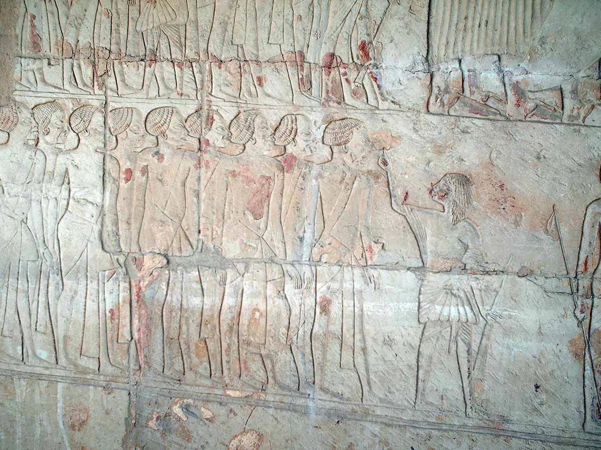当埃及进入中王国时期(约公元前2055-1650年)时,地缘政治局势再次发生变化。埃及国家实力强大,向南寻求开发努比亚资源,但它也必须应对来自北方移民的涌入。迦南人/亚洲人移民主要定居在三角洲,尽管来自南方的移民也在继续。尽管许多努比亚移民在中王国时期被埃及化,但埃及人仍然将自己与非埃及人区分开来。来自贝尼哈桑的一尊小型木制雕像展示了埃及人对“异域”的迷恋。这尊雕像是女性,标注为“外国人”,背上背着孩子。女人的出身不明;黄棕色的肤色表明她来自黎凡特,而她的面部特征则可能暗示努比亚。无论如何,这尊在坟墓中发现的雕像表明,埃及人民很了解他们在中王国时期的非埃及邻居。