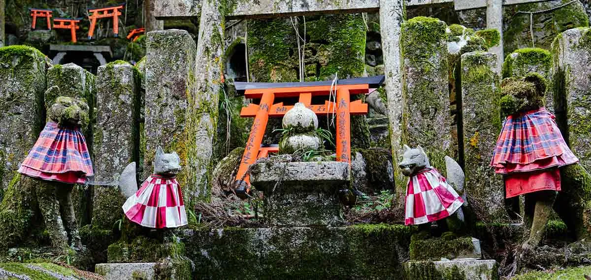 或者,它可能是“天狗” (tengu),一种长着丑陋的鼻子,既危险又友好的山地妖精。日本岛屿上的动植物也会变成妖怪,比如“狐狸” (kitsune) (一种聪明而顽皮的狐狸),“狸” (tanuki) (一种会变形的日本浣熊)甚至穿着艺妓服装的普通猫(“猫又” (Nekomata) ,一种会弹奏“三味线” (shamisen) 的猫,这种乐器传统上是用猫皮制成的)。