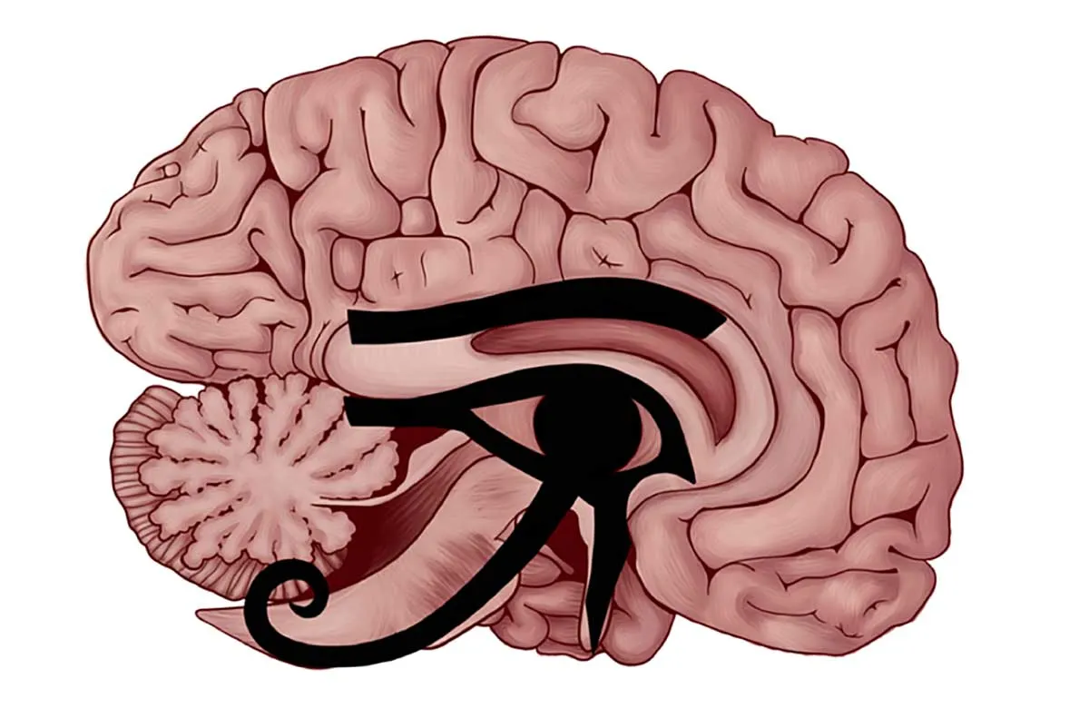 例如,当拉之眼叠加在脑的中矢状切面上时,拉之眼最靠近鼻子的部分确实位于负责嗅觉的嗅觉三角附近。同样,眼睛向后延伸到耳朵的部分位于与听觉有关的博德曼 41 和 42 区附近。荷鲁斯之眼的螺旋线在左侧对应着人类大脑中味觉通路形状和位置,而垂下来的直线则类似于将身体感觉传递到大脑的体感通路形状。最后,与眉毛相对应的胼胝体神经代表着思维或智慧。这条通路是连接大脑两个半球的纤维束,影响着思维和身体的协调运动。