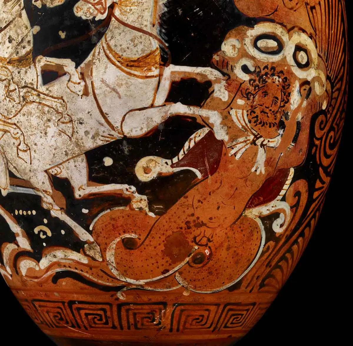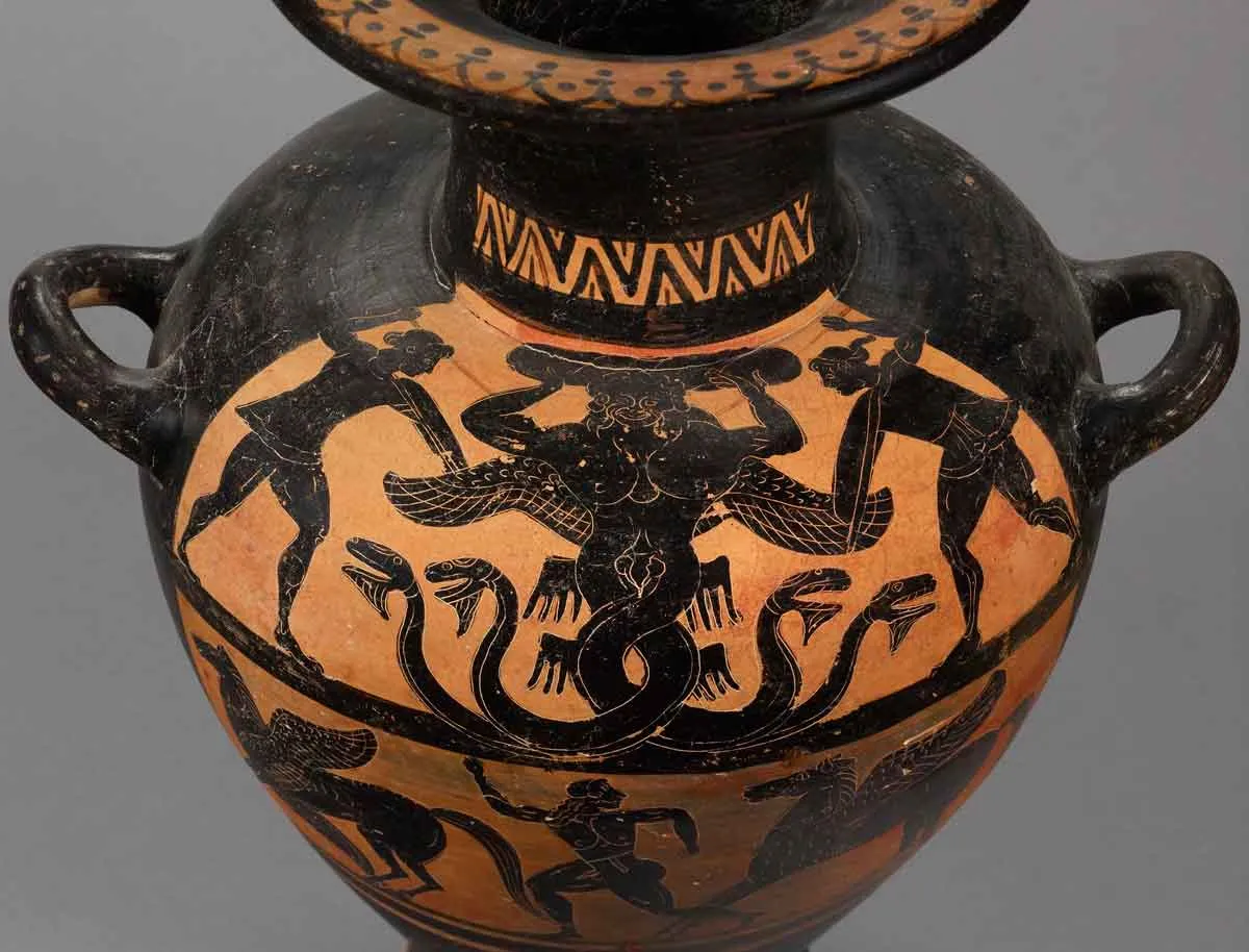 据说提丰是希腊神话中许多奇怪而危险的生物的父亲。他的怪诞后代恐怖地统治着凡间世界,其中大多数最终被英雄种族消灭。有些,比如守卫冥界之门的三头犬刻耳柏洛斯,被纳入了宙斯的宇宙秩序。
