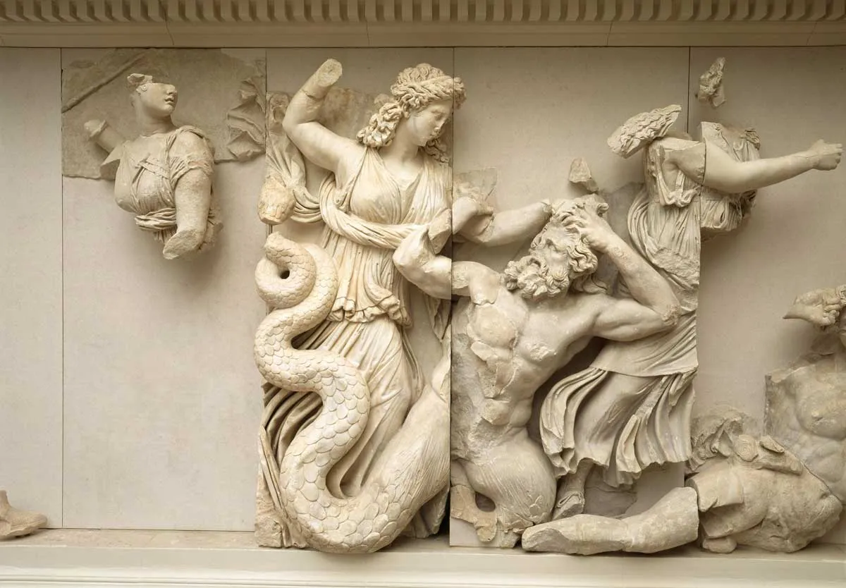 提丰拼命与宙斯战斗,向他投掷整座山,但神用他的雷电将它们炸开。当提丰逃到西西里岛时,宙斯将他逼到角落,将埃特纳火山压在他身上,将他囚禁在地下。