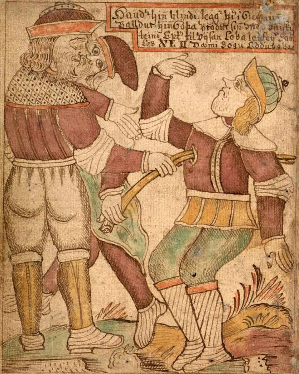 出于某种原因,狡猾的巨人洛基执着于发现巴尔德尔是否有什么弱点。所以有一天,他伪装成一个老妇人,进入弗丽嘉的圈子,与她交谈,赢得了她的信任。