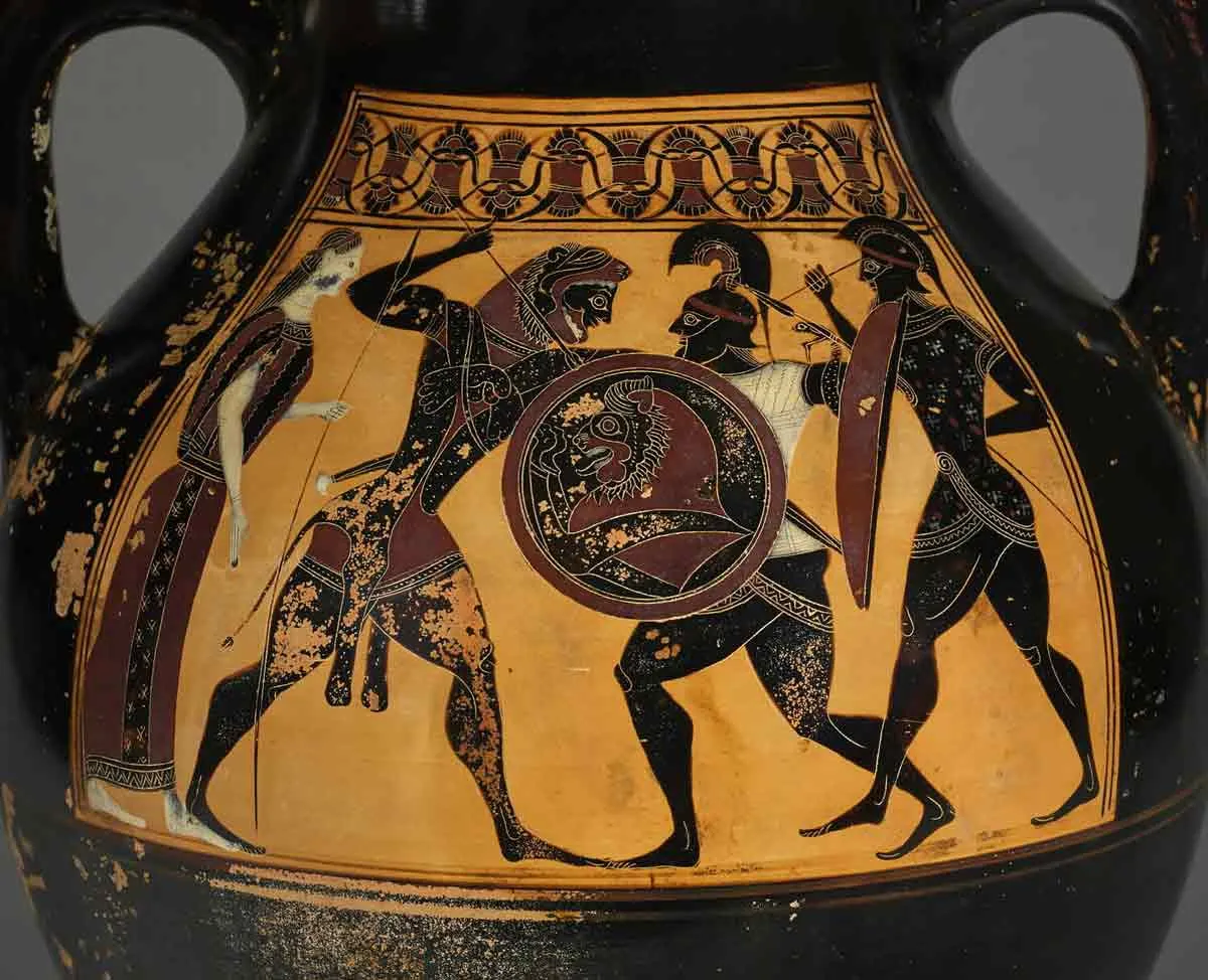 许多神都参与了这场战争,但阿瑞斯只关心战斗。他随意改变立场,为占上风的一方而战。一开始,他答应他的母亲赫拉支持希腊人,但他很快在阿芙罗狄蒂的怂恿下倒戈。在史诗中,他多次被称为说谎者和违誓者,例如当他与雅典娜对抗时,雅典娜当时正在帮助希腊英雄狄俄墨得斯。