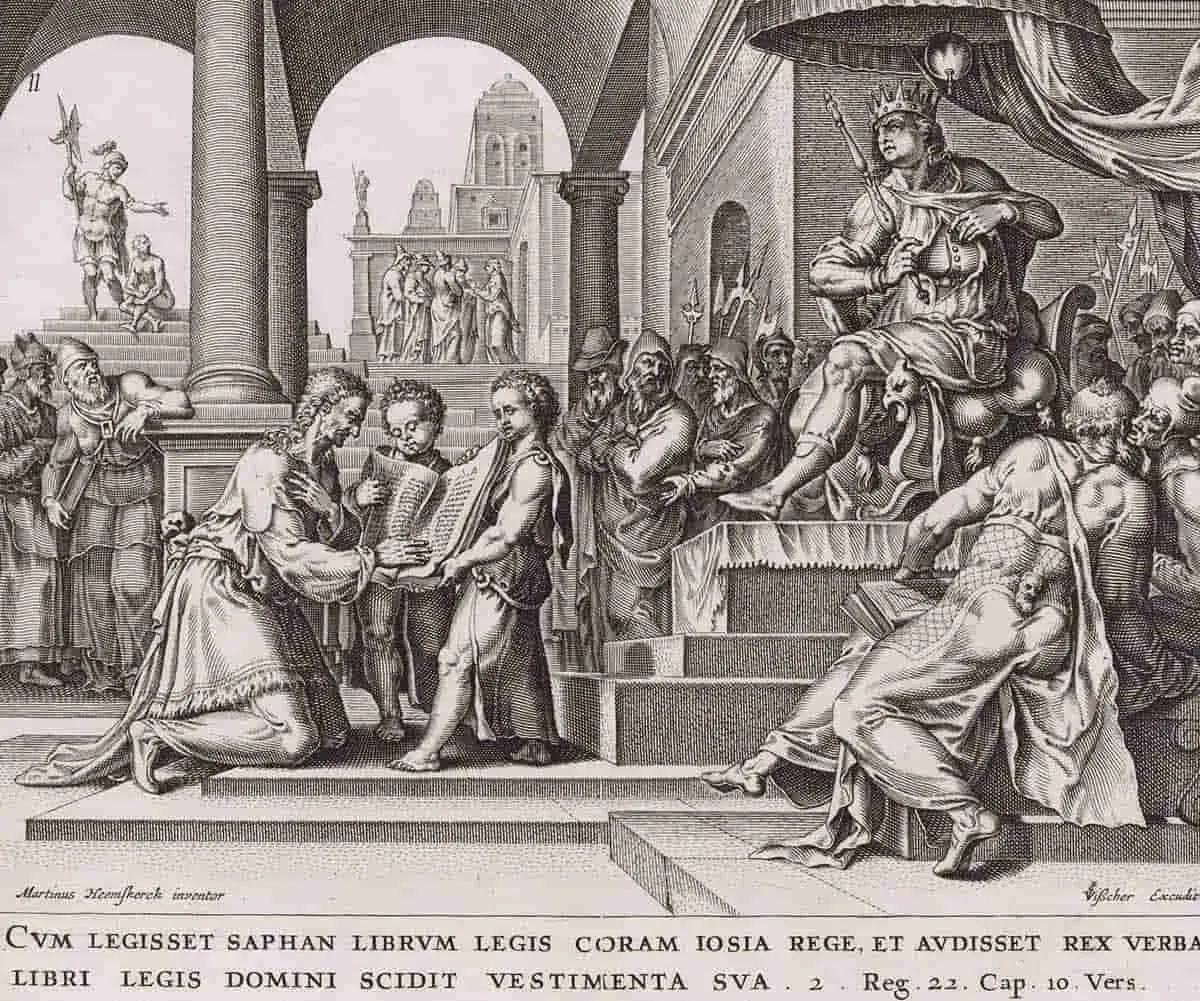 约西亚出现在列王纪下第二十二章。他八岁时加冕,后来开始了一项全面的改革计划,其重点是巩固对圣殿的崇拜,并消除那些进行未经授权仪式的“高处”。